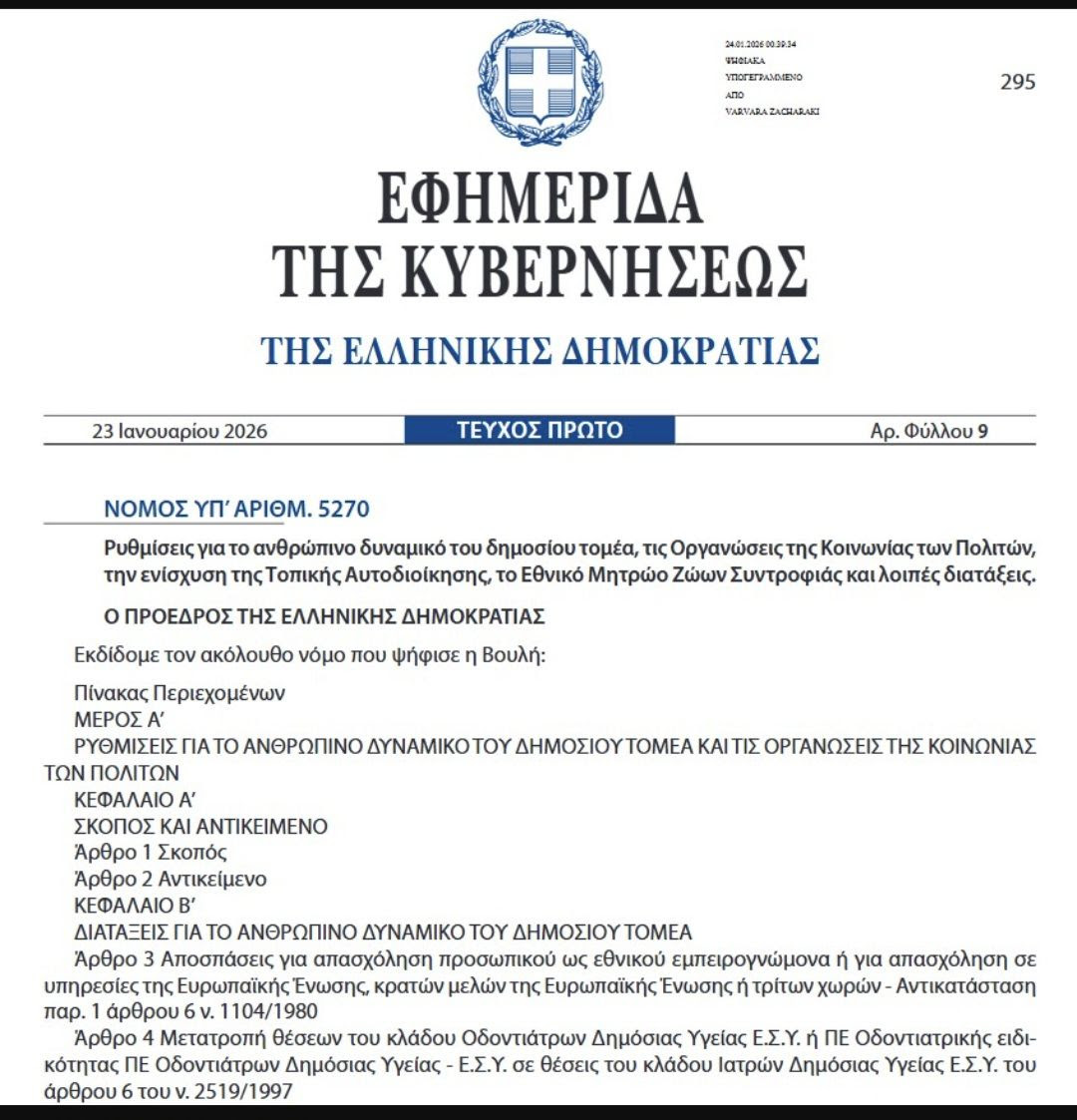 Η διάταξη περιλήφθηκε στο άρθρο 14 του νομοσχεδίου του Υπουργείου Εσωτερικών με τίτλο «Ρυθμίσεις για το ανθρώπινο δυναμικό του δημοσίου τομέα, τις Οργανώσεις της Κοινωνίας των Πολιτών, την ενίσχυση της Τοπικής Αυτοδιοίκησης, το Εθνικό Μητρώο Ζώων Συντροφιάς και λοιπές διατάξεις».