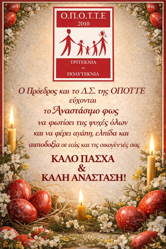 ΝέαΠασχαλινές ευχές 8 Απριλίου, 20268 Απριλίου, 2026 - από τον/την admin - Αφήστε ένα σχόλιο Προώθηση